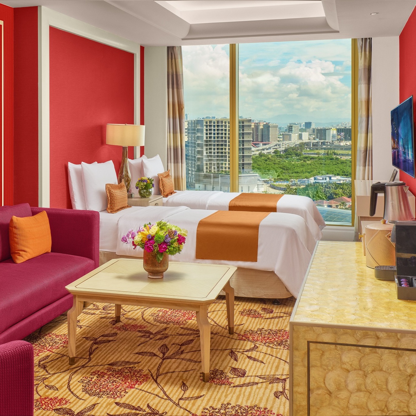 Okada Manila offers some of the largest and most luxurious hotel rooms in the Philippines, combining elegant design, modern technology, and premium comfort. The resort features over 1,000 rooms across its Coral and Pearl Wings, with views of Manila Bay or the iconic fountain